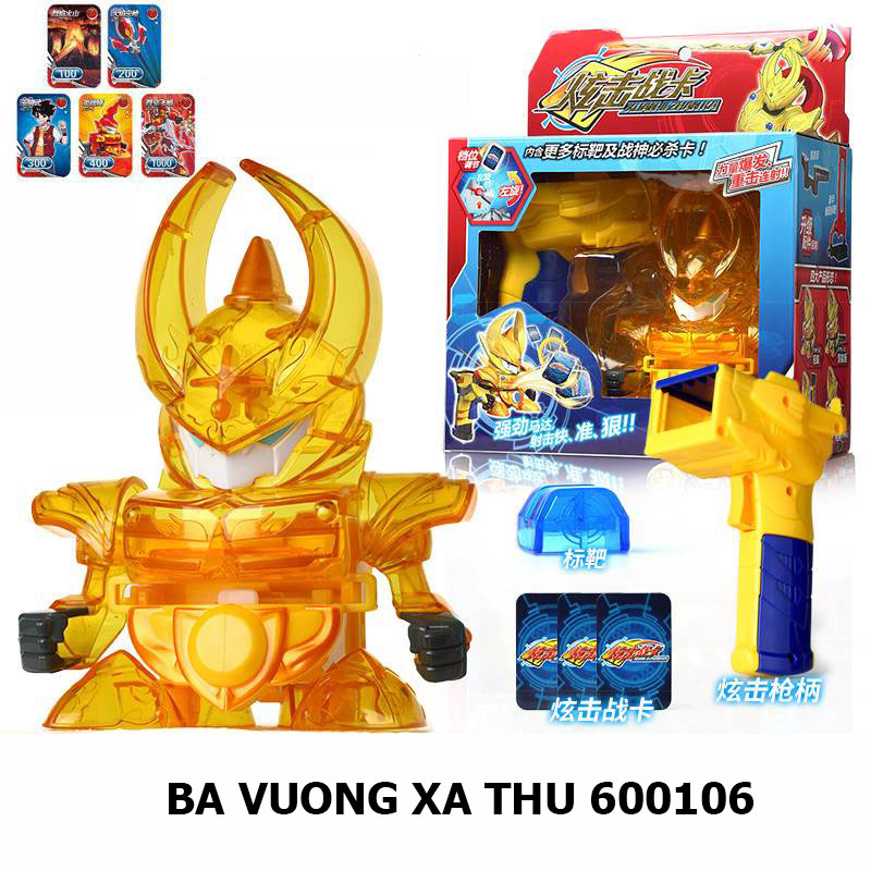 Bá vương xạ thủ 600106 - KIM NHẪN VƯƠNG là bộ đồ chơi dựa theo bộ phim Bá Vương Xạ Thủ này, sản phẩn do công ty Sunboy Toy Co, Ltd (phiên âm tiếng Việt là Tam Bảo) sản xuất. Đây là một hãng đồ chơi đến từ Trung Quốc, chuyên sản xuất đồ chơi và các series phim hoạt hình cho trẻ em từ 3 đến 12 tuổi. Cũng giống như các hãng lớn khác như Auldey và LingDong, Sunboy làm ra những series Anime dài tập và sản xuất những sản phẩm đồ chơi ăn theo những series đó. Các series tiêu biểu của hãng là: Chiến binh 12 con giáp, Siêu xe biến hình Superkar (được nhập khẩu và bán chính hãng tại Việt Nam), ...