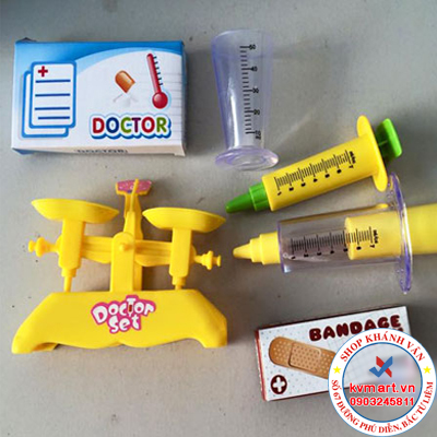 - Bộ đồ chơi bác sĩ No326681 mô phỏng lại hầu hết những vật dụng bác sĩ dùng để khám bệnh cho bệnh nhân. Bao gồm đầy đủ các dụng cụ và phụ kiện đi kèm rất sinh động như: Hộp đựng dụng cụ, ống nghe xinh xắn, urgo, bông thấm, kim tiêm nhựa...