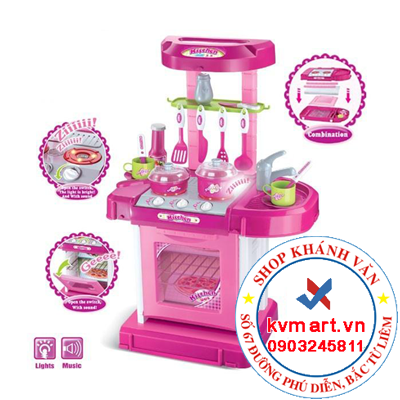 - Bộ đồ chơi nấu bếp kitchen cao cấp cho bé 008-58 được thiết kế bởi màu hồng chủ đạo kết hợp với một số sắc màu khác một cách hài hòa. Bộ sản phẩm rất hoành tráng với đầy đủ đồ đạc cho 1 shop ăn nhanh: bàn, bếp ga, nồi, chậu rửa bát, bát đĩa, cốc, dao, thìa, … Các bé sẽ thỏa thích chơi đùa cùng sản phẩm đáng yêu này.