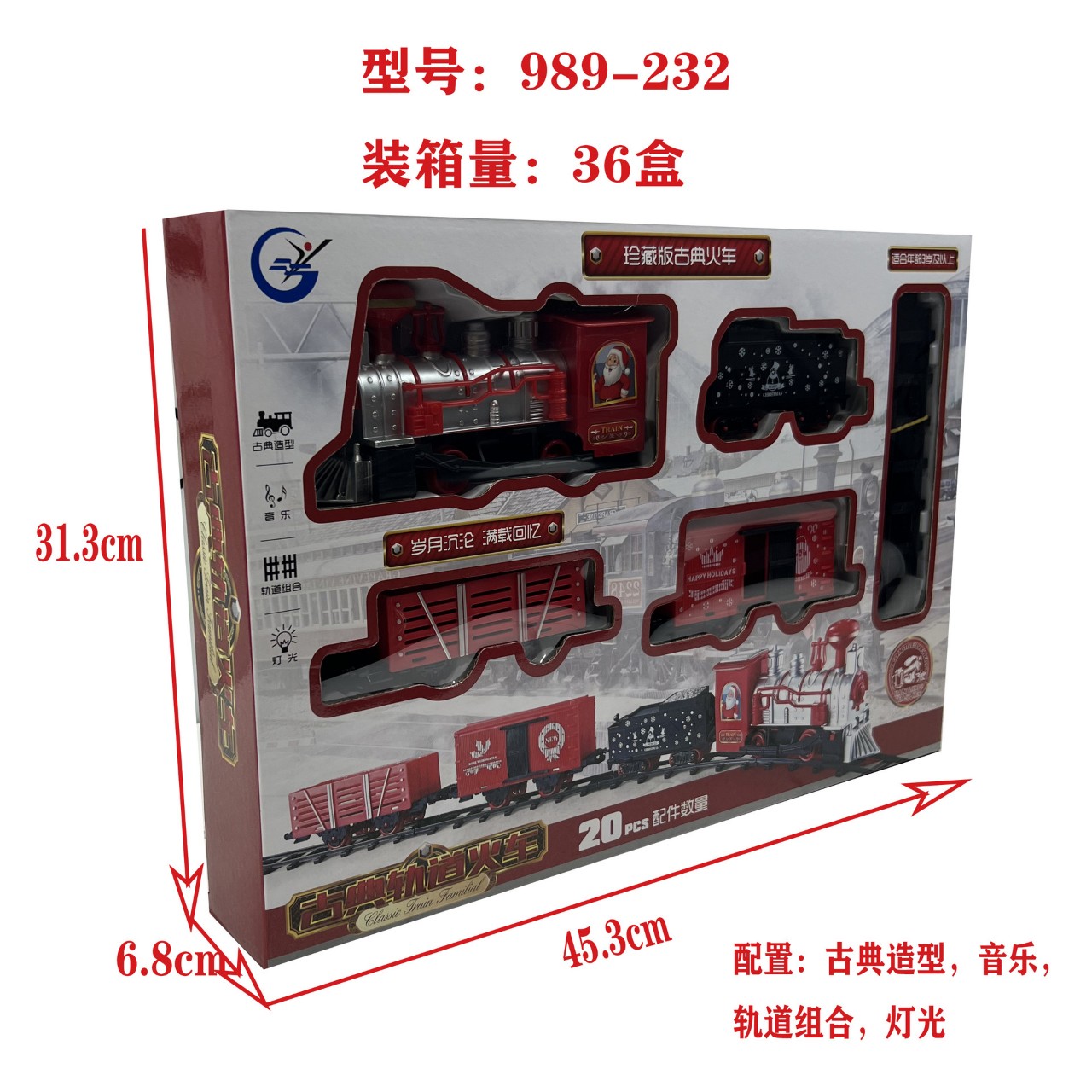 – Bao gồm đầu tàu chạy pin và 1 toa xe chở chất lỏng, 1 toa xe chở hàng, và 1 toa chở quạng. 4 toa nối vào nhau dài khoảng 80 cm, và 12 thanh ray để có thể nối vào nhau tạo thành đường tròn