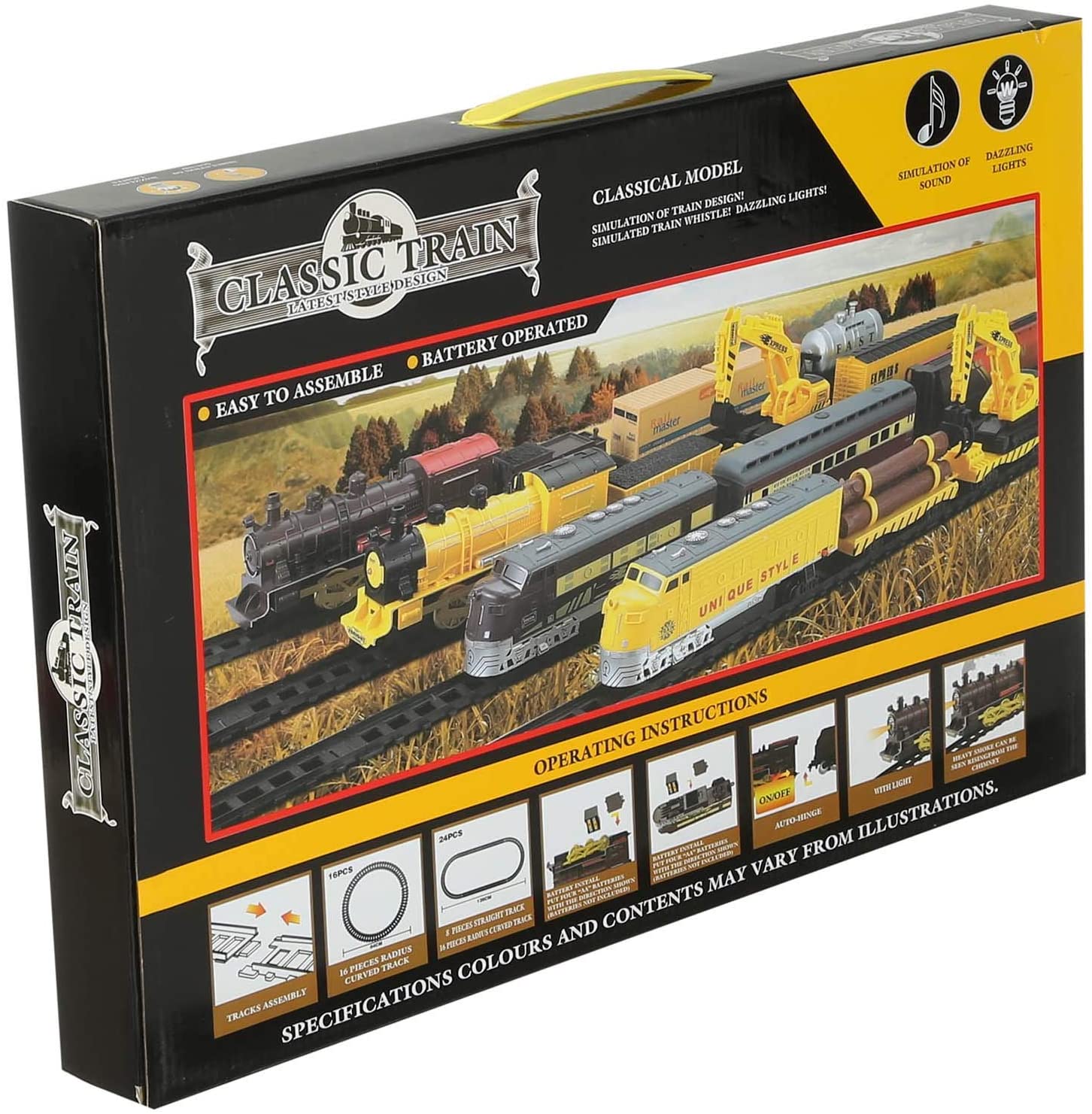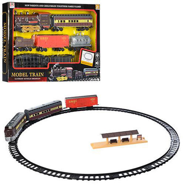 – Bao gồm đầu tàu chạy pin và 1 toa xe chở chất lỏng, 1 toa xe chở hàng, 5 toa nối vào nhau dài khoảng 80 cm, và 12 thanh ray để có thể nối vào nhau tạo thành đường tròn