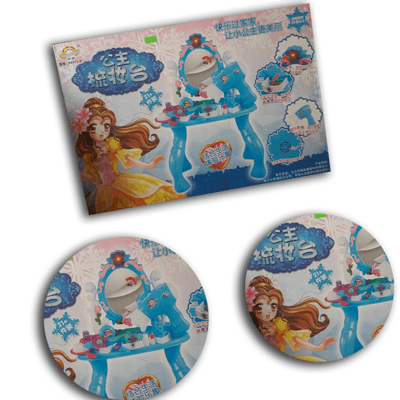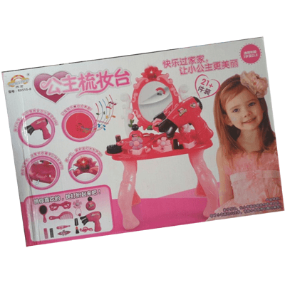 - Điểm nhấn tạo nên sự cuốn hút của bộ đồ chơi là chiếc gương trang điểm có đèn phát sáng và nhạc sôi động, cùng máy sấy tóc chạy pin phát ra âm thanh mô phỏng giống hệt như máy sấy thật.