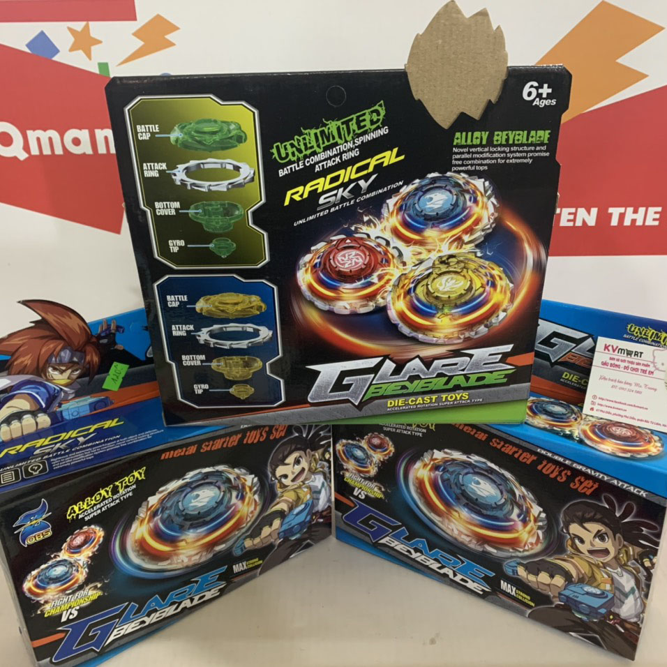 Đặc điểm: mỗi hộp sản phẩm có 1 con quay, một báng cầm; có nhiều loại nhân vật khác nhau để lựa chọn;