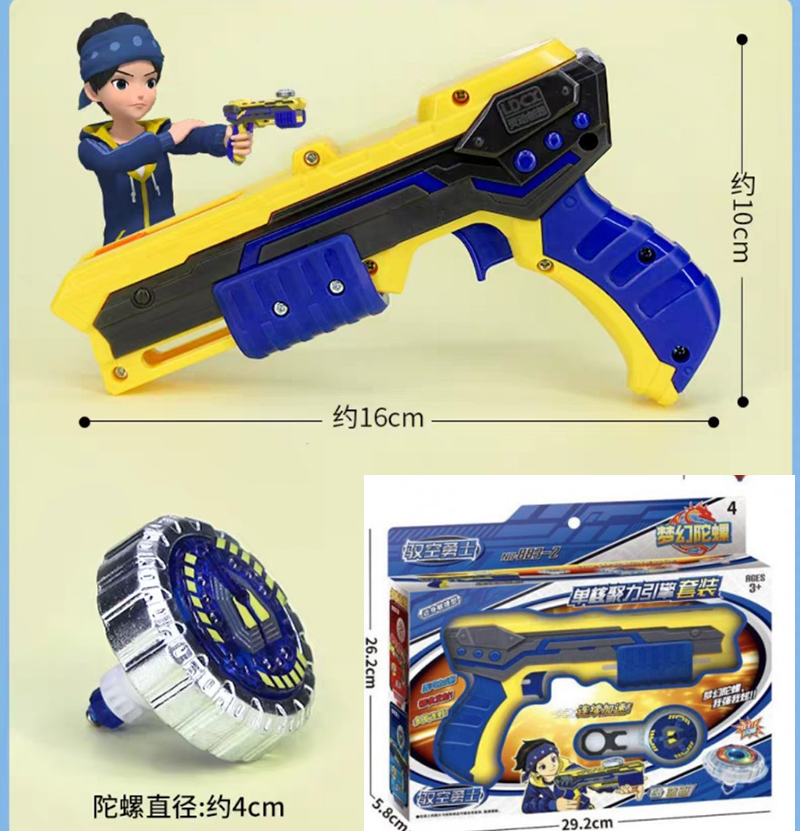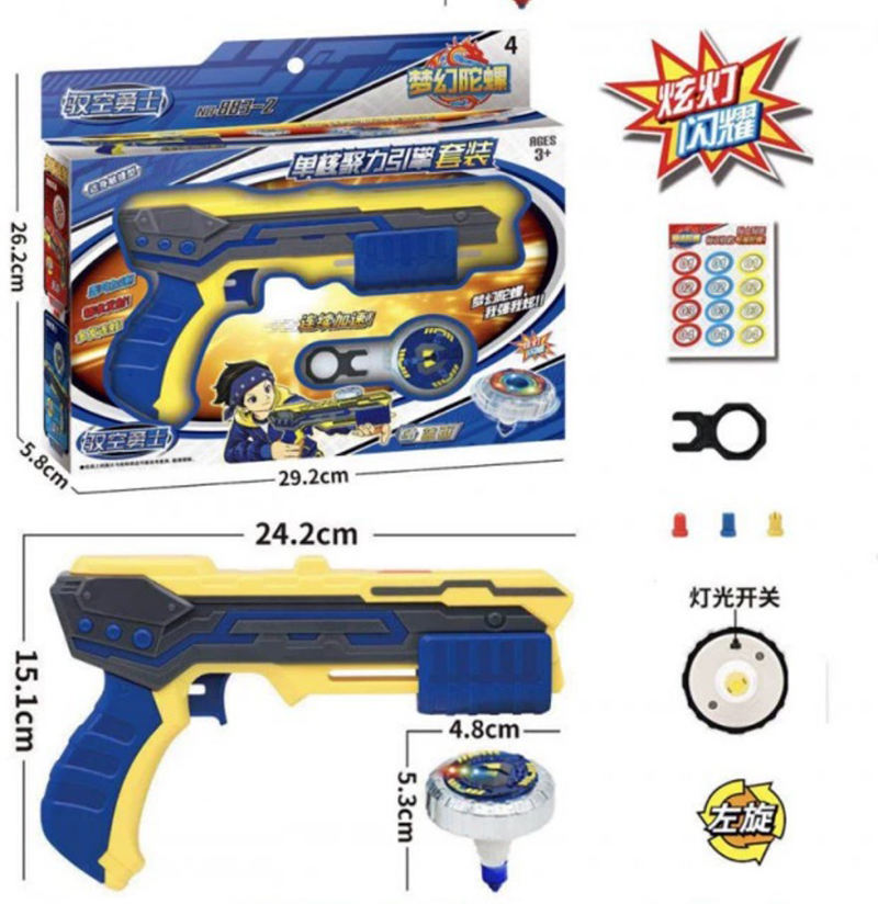Sản phẩm gồm 1 thiét bị phóng quay, 1 con quay và 1 dụng cụ để tháo rời các chi tiết con quay. Con quay rất khỏe dễ quay.