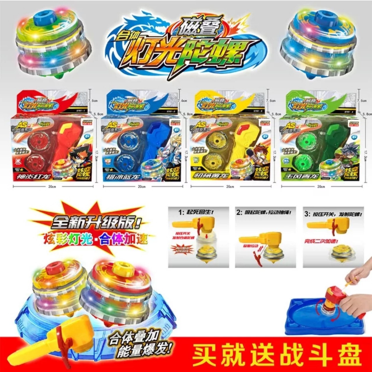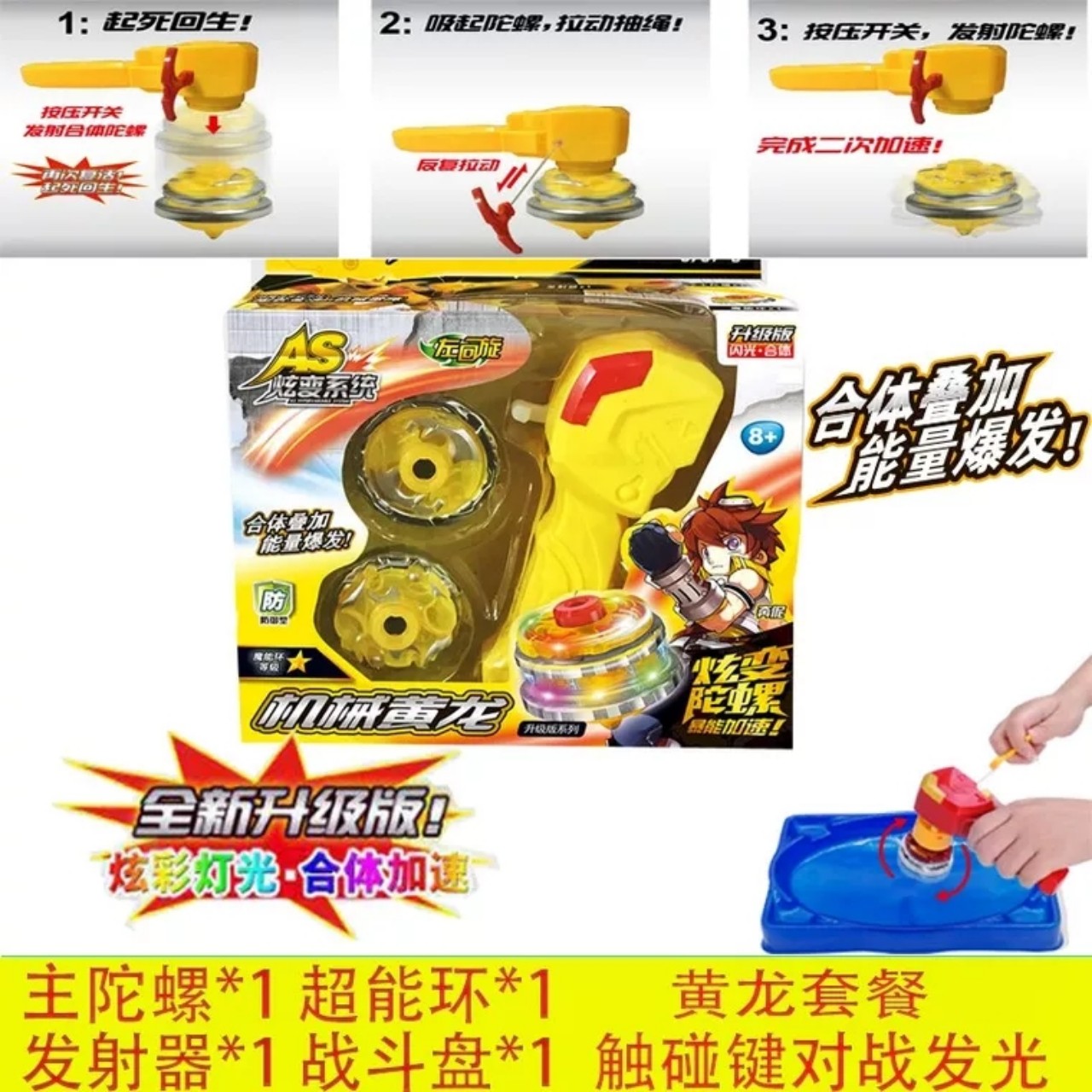 - Thông tin sản phẩm: + Con quay ma thuật phiên bản nâng cấp với tay cầm dây rút + Con quay có vòng thi đấu màu vàng mắt ma thuật màu xanh da trời , Tay cầm màu vàng + Có đèn khi quay + 3 mũi quay có thể thay thế, tháo lắp dễ dàng + 01 video hướng dẫn chơi Đặc điểm nổi bật sản phẩm