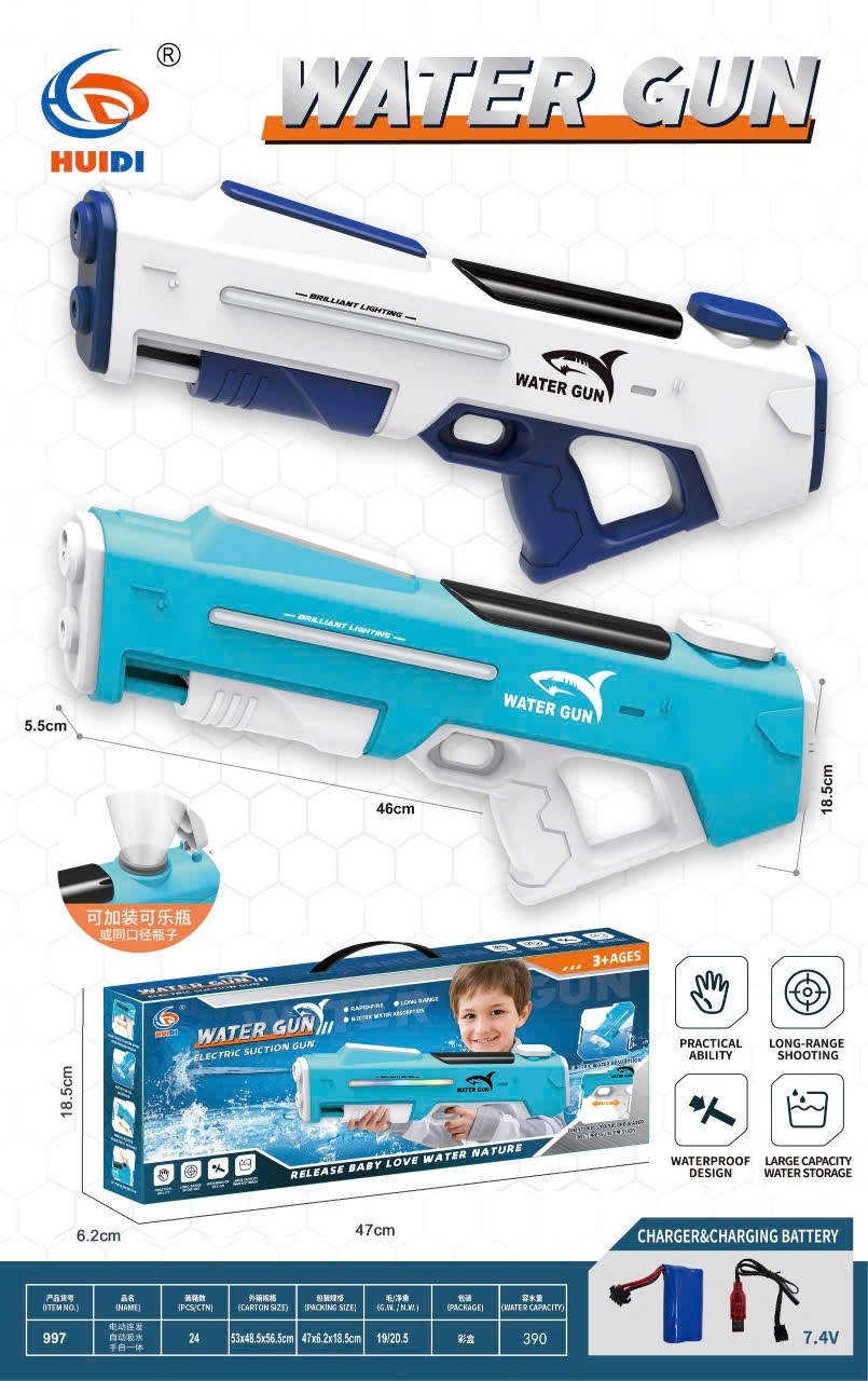 - Dung tích lớn 500ml: Súng nước điện của chúng tôi có bộ sạc bình nước 500ml có thể cung cấp cho bạn năng lượng mạnh mẽ và lâu dài để trấn áp đối thủ trong trò chơi và giúp bạn giành chiến thắng trong trận chiến dưới nước.