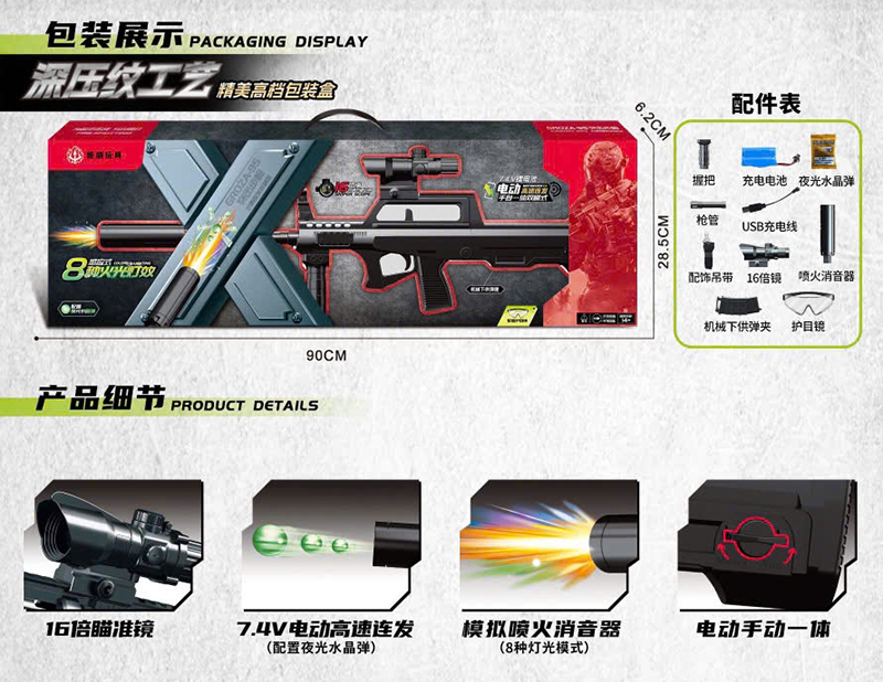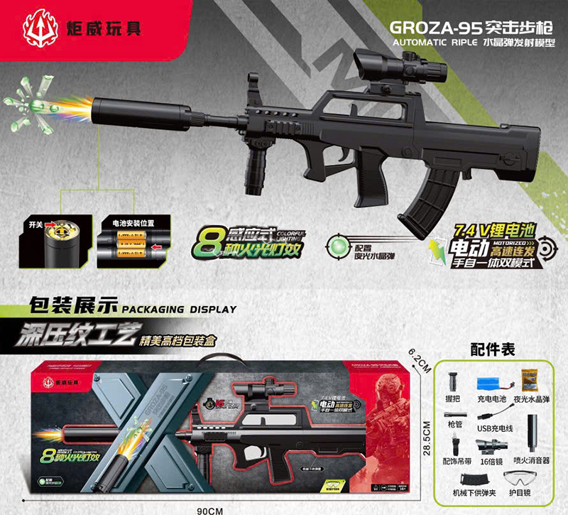 Sản phẩm Đồ chơi GROZA95 bắn đạn thạch liên thanh - JW806 được thiết kế dựa trên mô hình thực tế, mang lại cảm giác chân thực và hấp dẫn cho người chơi. Đây là một loại phóng viên thạch đồ chơi bắn đạn thạch (gel gun) sử dụng đạn thạch 7-8mm, một loại đạn an toàn và thân thiện với môi trường.