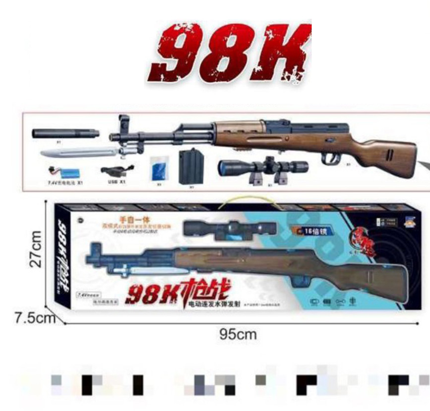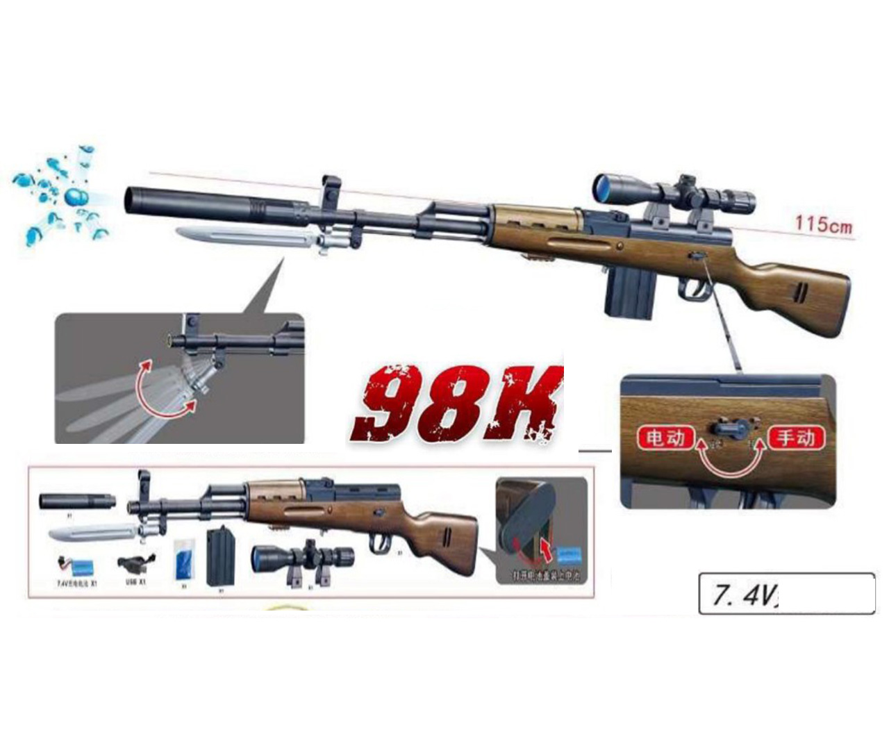 Sản phẩm Đồ chơi K98 bắn đạn thạch liên thanh - 074A có tỷ lệ 1:1; Full phụ kiện