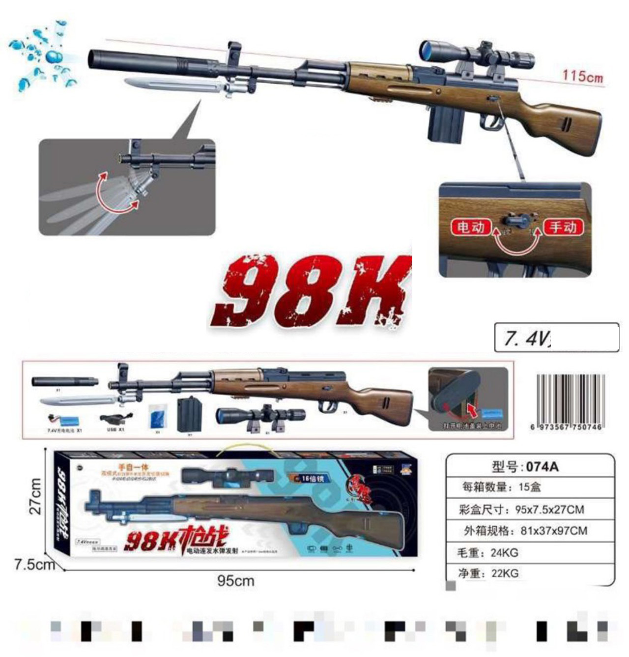 + Đồ chơi K98 bắn đạn thạch liên thanh - 074A khách hàng lựa chọn mẫu tương úng