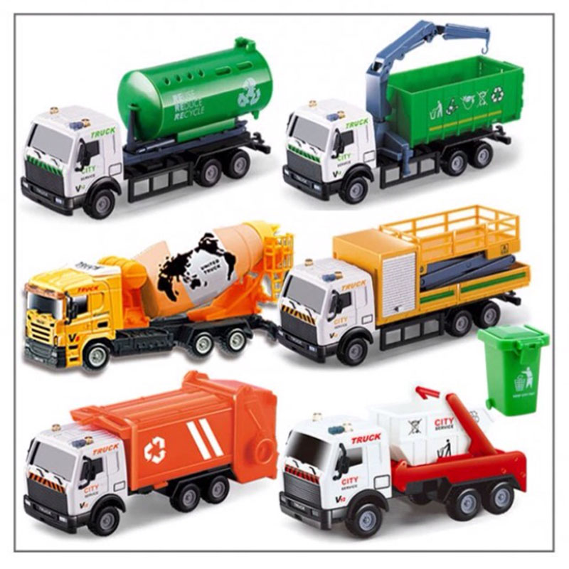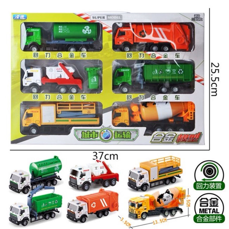 Đồ chơi mô hình 6 xe oto công trình làm bằng sắt - 28064 là loại đồ chơi mô phỏng nguyên mẫu những chiếc otô công trình như xe chộn be tông, xe chở nước, xe nâng và xe chở rác thải được thu nhỏ theo tỷ lệ 1:32 của những chiếc xe này ngoài thực tế. Đây là sản phẩm của hãng DONBFUL sản xuất và ra mắt năm 2019 xe được làm từ kim loại kết hợp với các chất liệu nhựa an toàn, không gây hại cho sức khỏe của bé. Thiết kế đẹp mắt với 6 mẫu để bé nhà bạn lựa chọn, đây là loại ô tô mô hình sắt, rất bền không độc hại, bé có thể chơi vài năm, thậm chí là theo bé đến tận khi lớn.