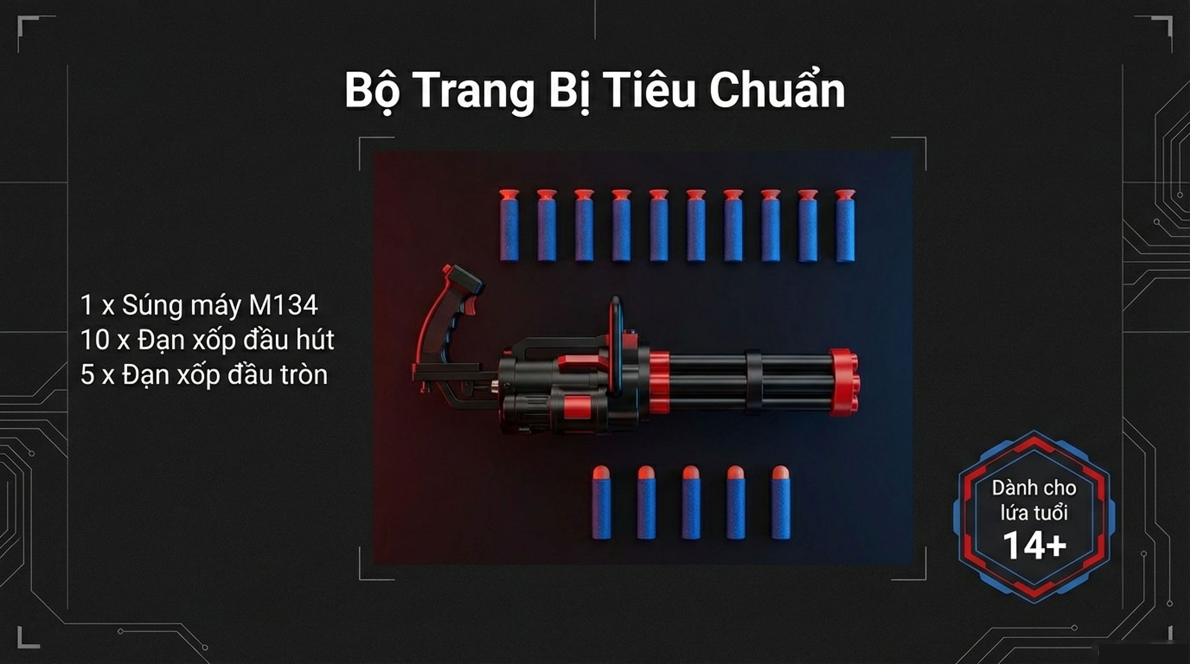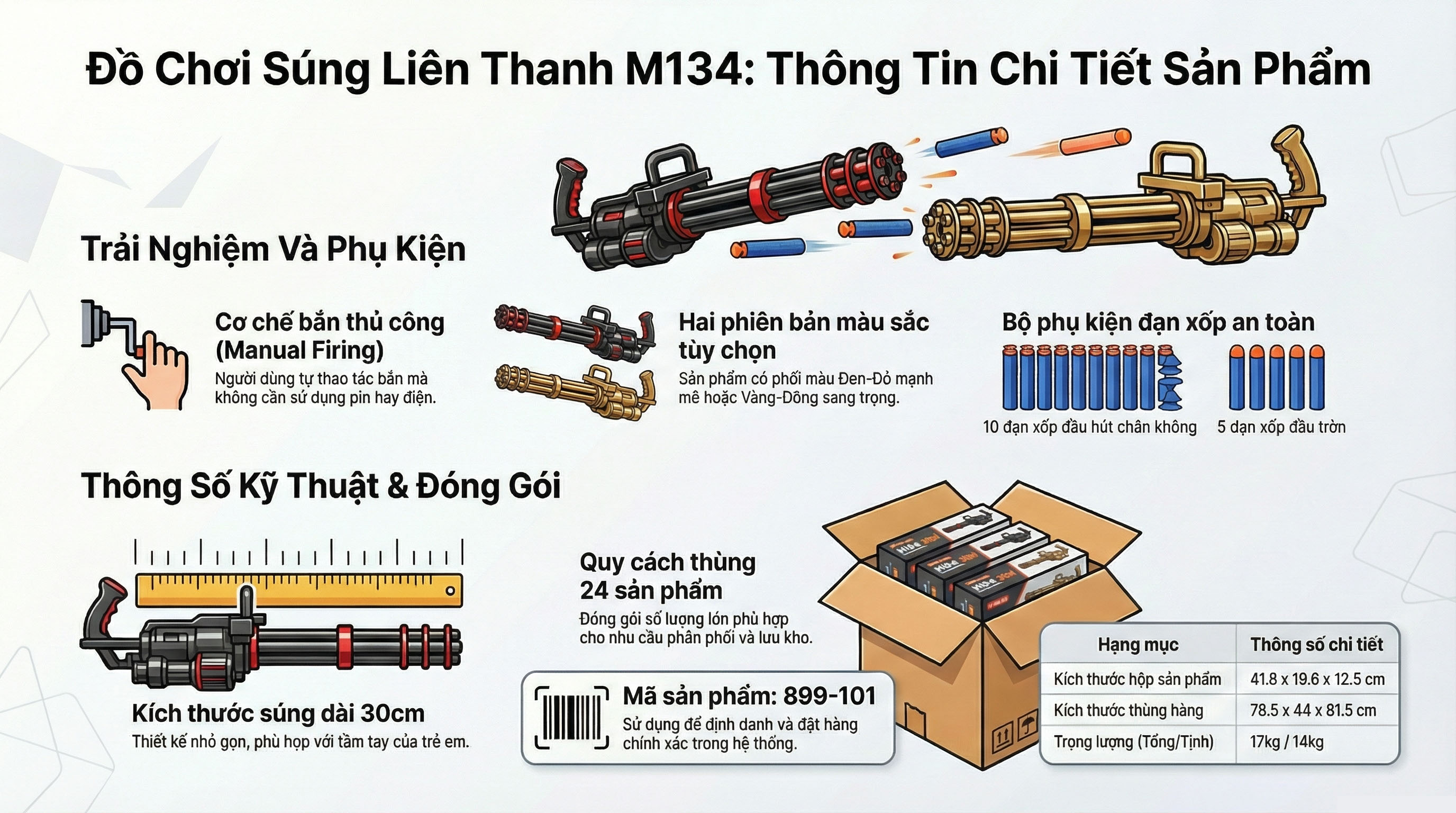 Đồ chơi Nerf M134 phun xốp mút kính 5 lỗ phóng - 899101 là lựa chọn lý tưởng cho các hoạt động vận động trong nhà và ngoài trời, giúp rèn luyện khả năng quan sát, phối hợp tay – mắt và mang đến những phút giây thư giãn lành mạnh cho người dùng ở nhiều lứa tuổi