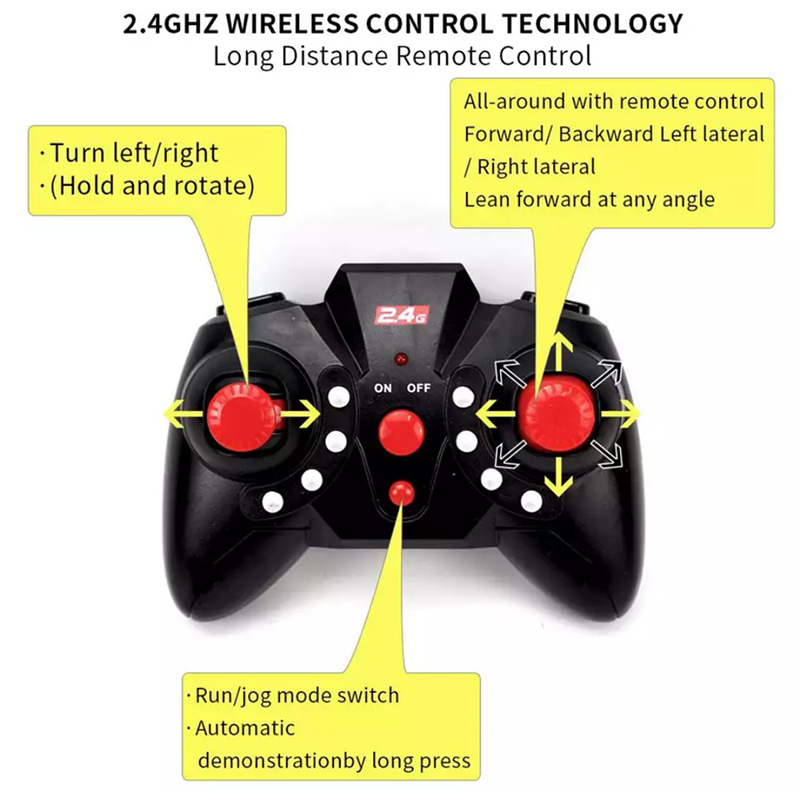 - Chức năng: 5 chức năng: Tới – lùi - rẽ trái - rẽ phải - quay tròn 360 độ và nâng hạ gầm xe.
