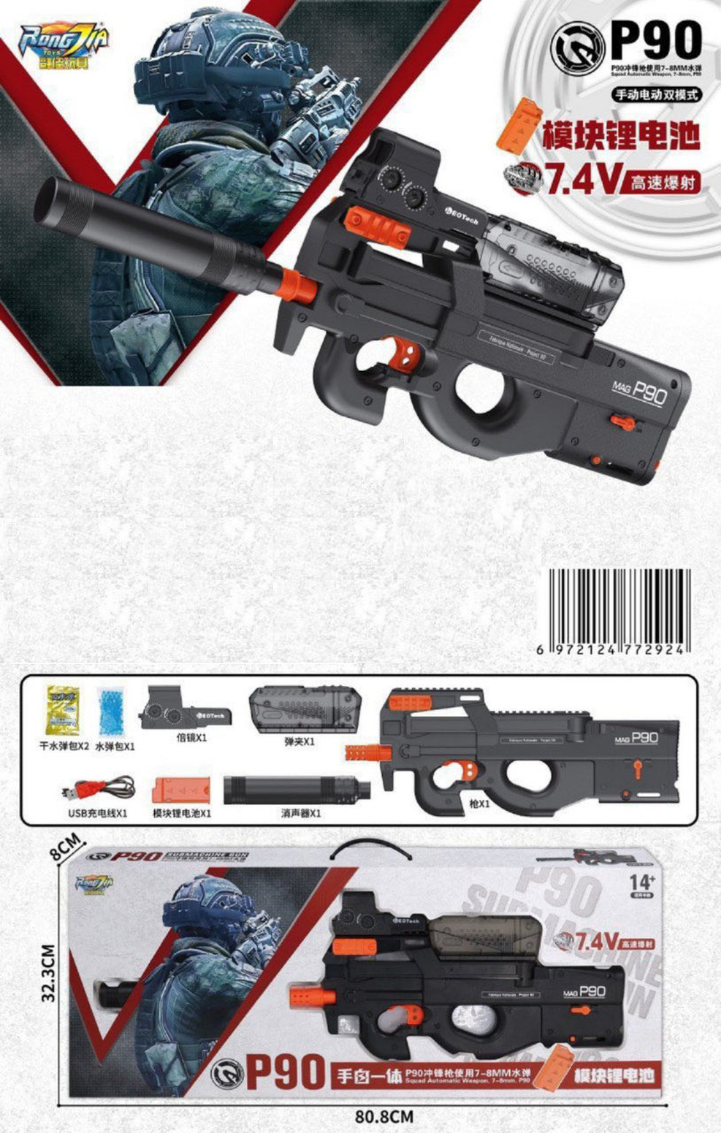 Sản phẩm đồ chơi súng P90 mã YBT167 được thiết kế dựa trên mô hình súng thật, mang lại cảm giác chân thực và hấp dẫn cho người chơi. Đây là một loại súng đồ chơi bắn đạn thạch (gel gun) sử dụng đạn thạch 7-8mm, một loại đạn an toàn và thân thiện với môi trường.
