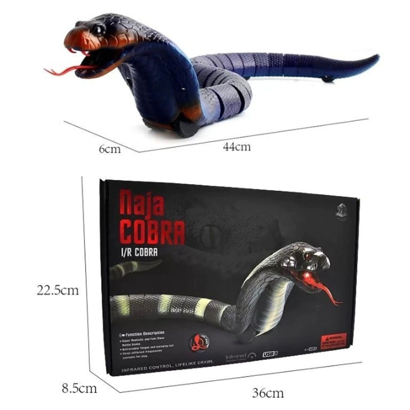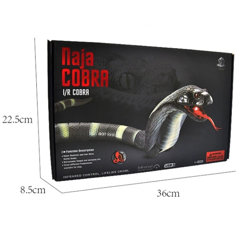 Đồ chơi Rắn Hổ Mang Điều Khiển Từ Xa được làm bằng vật liệu ABS thân thiện với môi trường. được mô phỏng nguyên mẫu rắn hổ mang thực tế, Đây là một con rắn điều khiển bằng sóng radio và di chuyển như một con rắn thật. Theo tỉ lệ chiều dài của nó, nó có những chiếc răng nanh dài nhất của bất kỳ loài rắn nào. Khi bị đe dọa, nó có thể tấn công vào một khoảng cách ít nhất là một phần ba chiều dài cơ thể của nó.