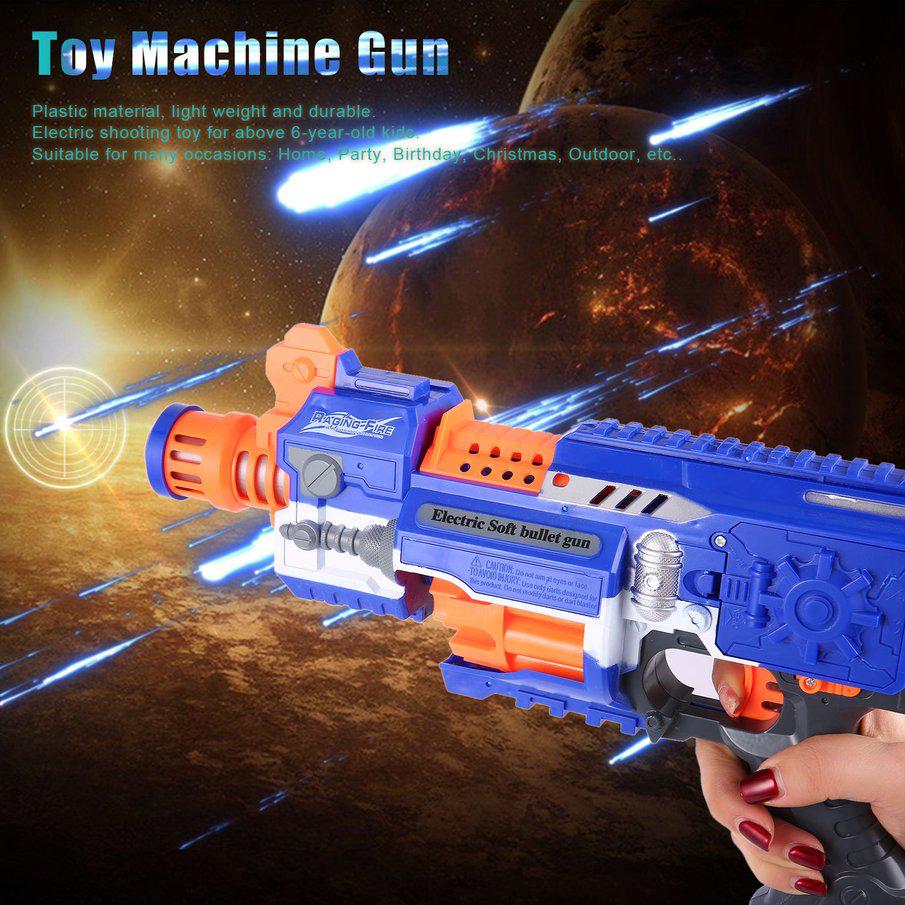 Đặc điểm:  súng bắn đạn xốp an toàn sử dụng 3 pin AA. Sau khi gắn đạn vào khay đạn, sau mỗi lần bóp cò các đạn mút xốp sẽ tự động bắn ra.