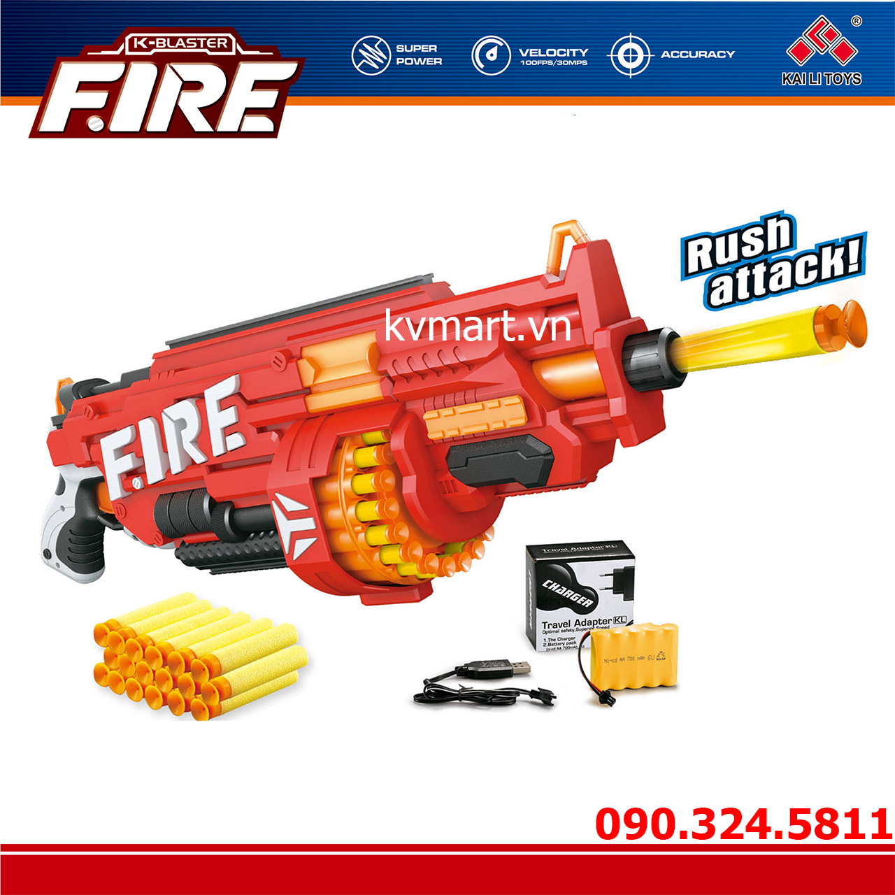 Đặc điểm: súng bắn đạn xốp an toàn sử dụng pin sạc. Sau khi gắn đạn vào khay đạn, sau mỗi lần bóp cò các đạn mút xốp sẽ tự động bắn ra.