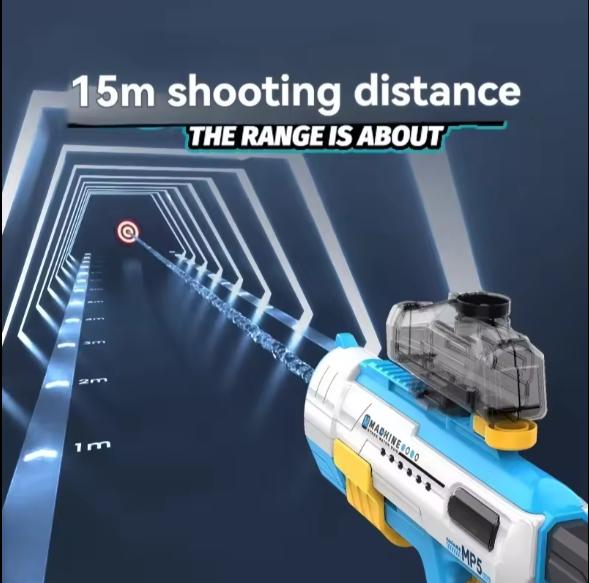- Súng phun nước điện: sản phẩm nước này chạy bằng pin và có thể bắn liên tục chỉ bằng một cú nhấn nhẹ vào cò súng, giúp bạn tiết kiệm năng lượng khi chơi. Nó phù hợp cho trẻ em từ 7 đến 10 tuổi và người lớn và là đồ chơi hoàn hảo cho khu vườn mùa hè, hồ bơi và bãi biển.