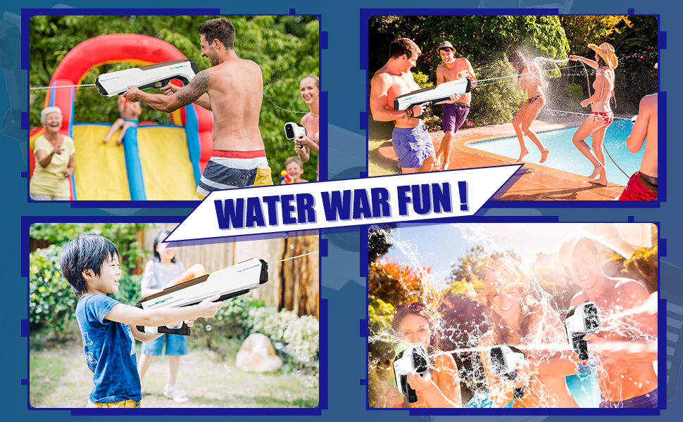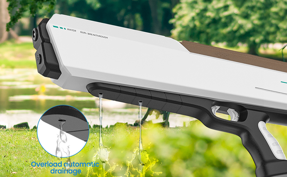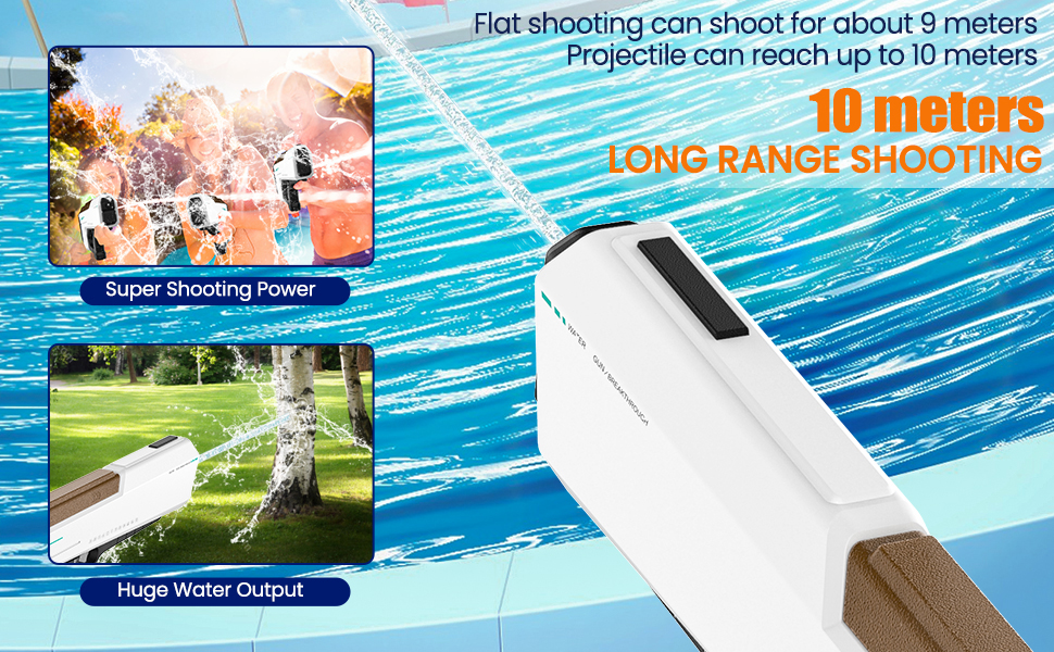- Súng phun nước điện: sản phẩm nước này chạy bằng pin và có thể bắn liên tục chỉ bằng một cú nhấn nhẹ vào cò súng, giúp bạn tiết kiệm năng lượng khi chơi. Nó phù hợp cho trẻ em từ 7 đến 10 tuổi và người lớn và là đồ chơi hoàn hảo cho khu vườn mùa hè, hồ bơi và bãi biển.