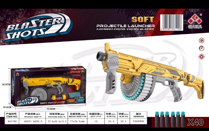 Đồ chơi súng bắn đạn xốp mút kính M32 - Blaster SB570 là sản phẩm có với tỷ lệ 1:2 theo nguyên mẫu sản phẩm súng AK47 do hãng KAI LI TOYS sản xuất. Đây là một món đồ chơi thể thao giải trí cực kỳ thú vị dành cho mọi lứa tuổi. Đồ chơi súng bắn đạn xốp mút kính - Blaster SB570 tương đồng với Súng Nerf Elite Firestrike rất an toàn và phù hợp cho người chơi trên 6 tuổi và được làm từ chất liệu nhựng nguyên sinh ABS an toàn khi sử dụng. Đồ chơi Blaster SB570 bắn đạn xốp được vận hành và lên đạn bàng cơ không dùng pin và mỗi lần bắn sẽ bắn 40 viên liên tục, có khả năng bắn chúng đích xa đến gần 20 mét (60 feets)!