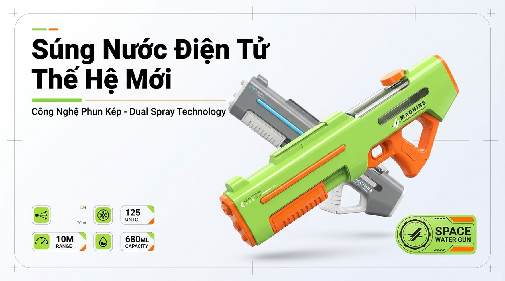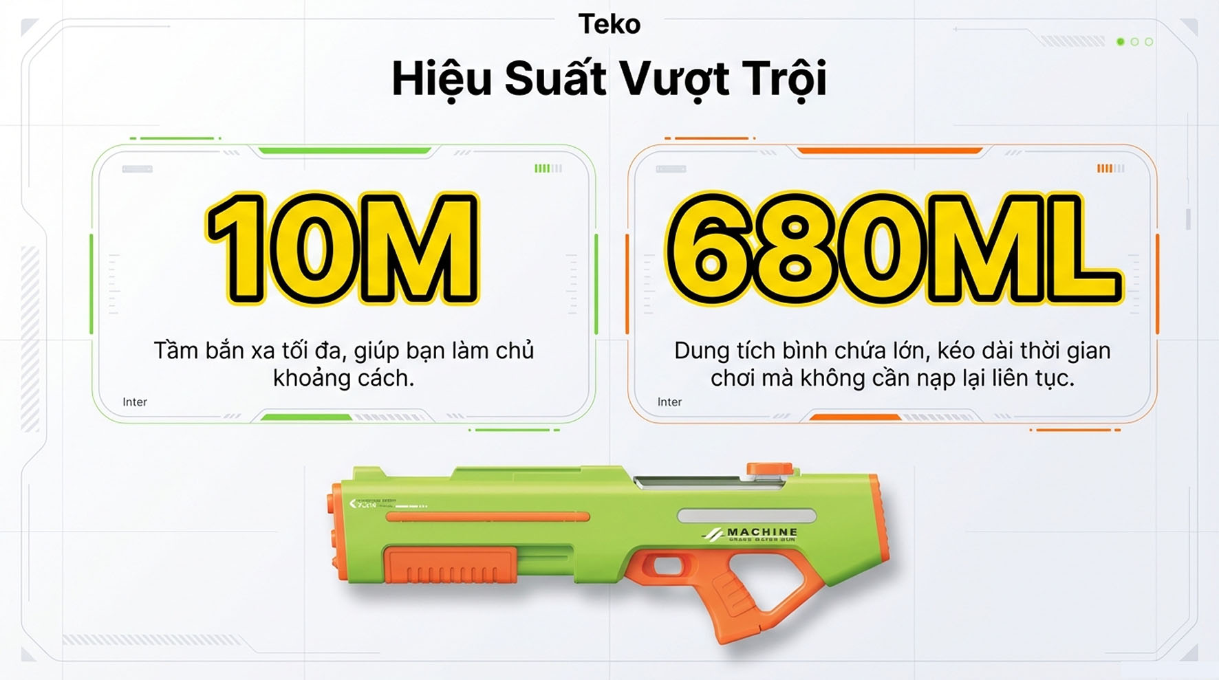 - Tầm bắn 10 mét: Súng nước có tầm bắn tối đa lên tới 10 mét, vượt qua hầu hết các loại súng nước truyền thống. Dù đối thủ ở đâu bạn cũng có thể dễ dàng đánh hắn từ xa và giành chiến thắng (Lưu ý: Không nhắm vào mắt để tránh bị thương).