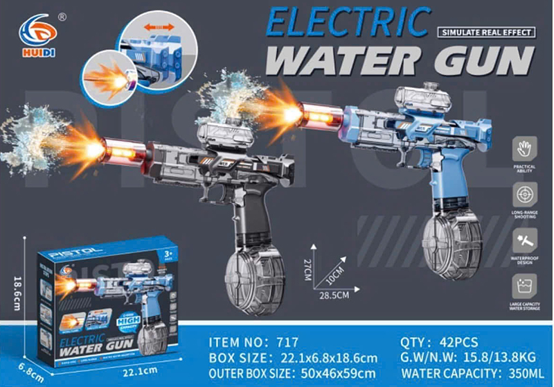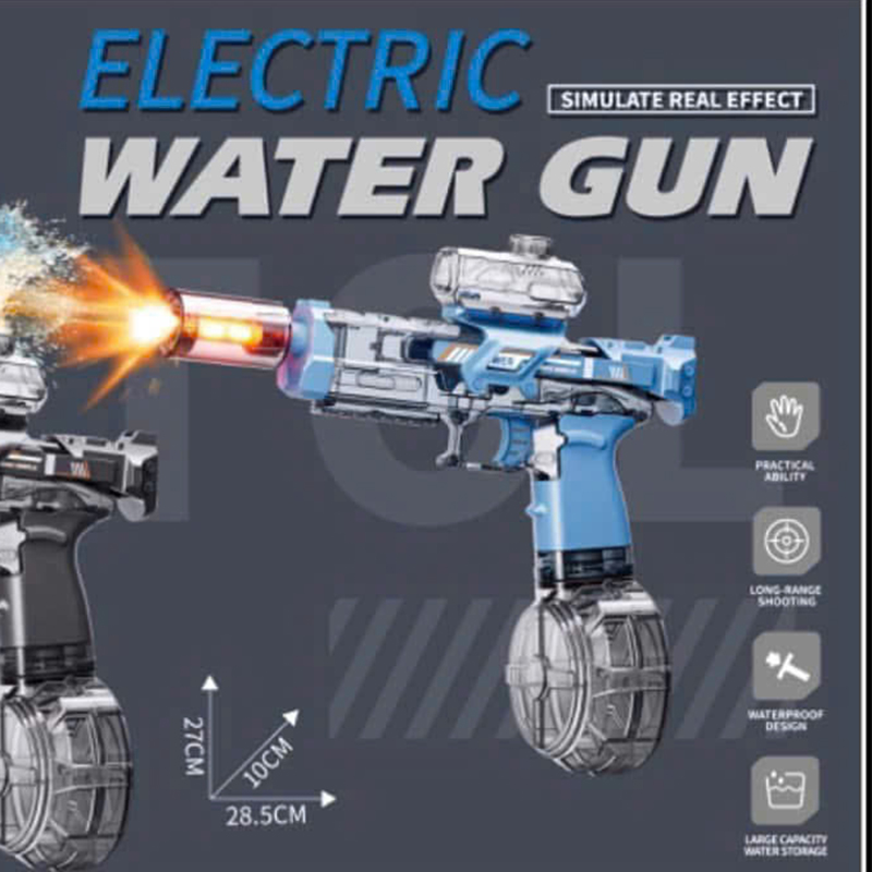 - Súng phun nước điện: sản phẩm nước này chạy bằng pin và có thể bắn liên tục chỉ bằng một cú nhấn nhẹ vào cò súng, giúp bạn tiết kiệm năng lượng khi chơi. Nó phù hợp cho trẻ em từ 7 đến 10 tuổi và người lớn và là đồ chơi hoàn hảo cho khu vườn mùa hè, hồ bơi và bãi biển.
