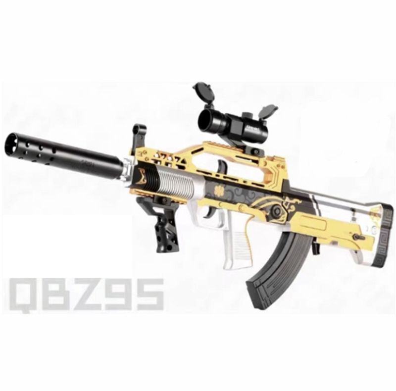Đồ chơi súng QBZ95 bắn đạn thạch liên thanh - G67033 hay còn gọi là gel gun là cách gọi chung của các mẫu mô hình bắt trước các mẫu vũ khí có thật trong thực tế. Gelgun sử dụng loại đạn thạch 7-8mm, dạng viên hình tròn như silicon. Loại đạn này ban đầu ở trạng thái khô, sau khi ngâm với nước sẽ nở ra