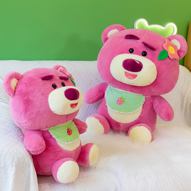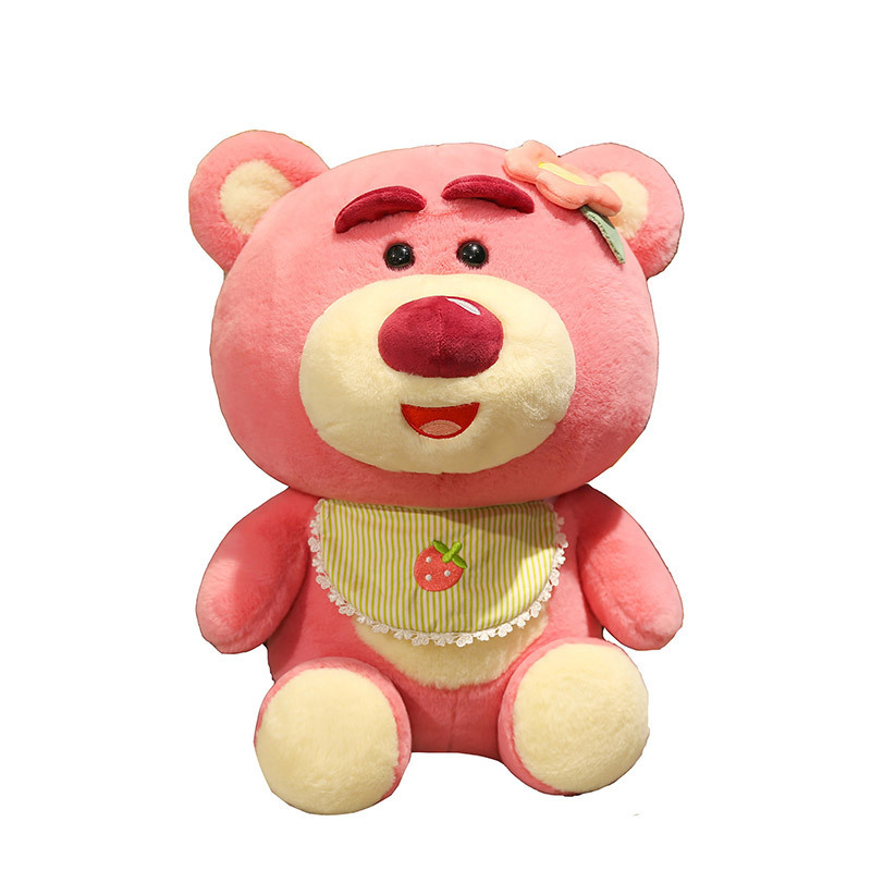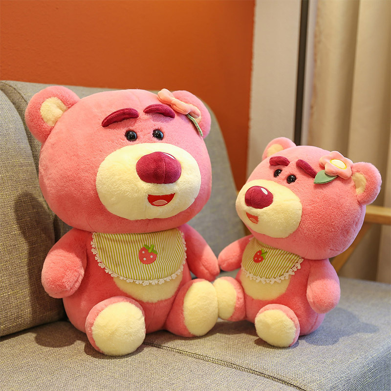 Gấu Dâu Lotso Hugging Bear Yếm Ngồi cực kỳ đáng yêu, dễ thương Sản phẩm gấu nhồi bông được thiết kế dưới dạng gối ôm vải nhung co dãn 4 chiều êm ái tạo cảm giác dễ chịu cho người dùng, rất được khách hàng say mê yêu thích, cam kết an toàn sức khỏe