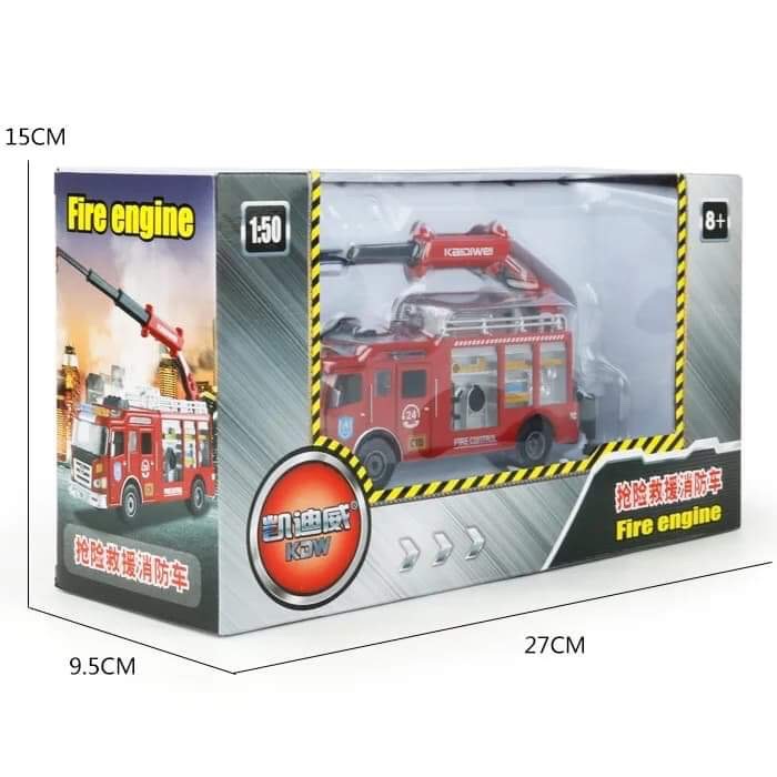 Đồ chơi mô hình xe cứu hỏa làm bằng sắt là loại đồ chơi mô phỏng các vật dụng, thiết bị thường ngày được thu nhỏ theo tỷ lệ 1:50 của chiếc xe cứu hỏa ngoài thực tế.