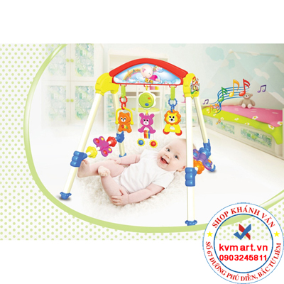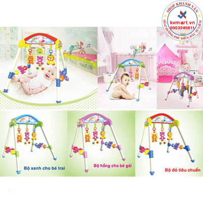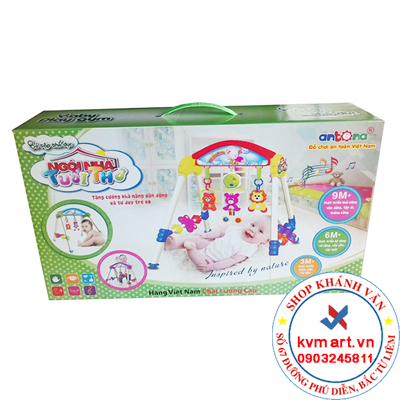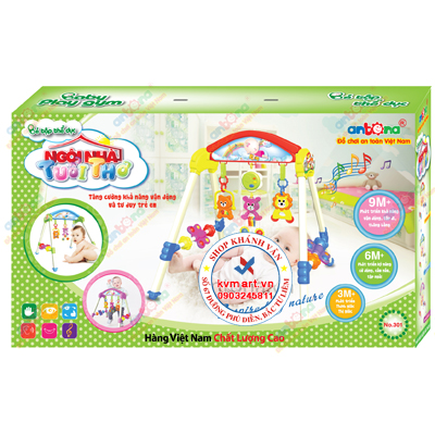 - Thiết kế chắc chắn bao gồm 4 chân có 4 núm cao su bịt đảm bảo sự chắc chắn, không trơn trượt, 2 khung ngang được lắp với chân bằng chữ V, làm cho sản phẩm thêm phần chắc chắc không lung lay. Ngoài ra 2 khung ngang còn được treo đồ chơi xúc xắc hình bướm và những bông hoa có thể xoay tròn. Bốn chân được lắp vào 2 thành bên gắn liền với mái nhà có treo nhiều loại đồ chơi xúc sắc đa dạng màu sắc bắt mắt kèm theo.