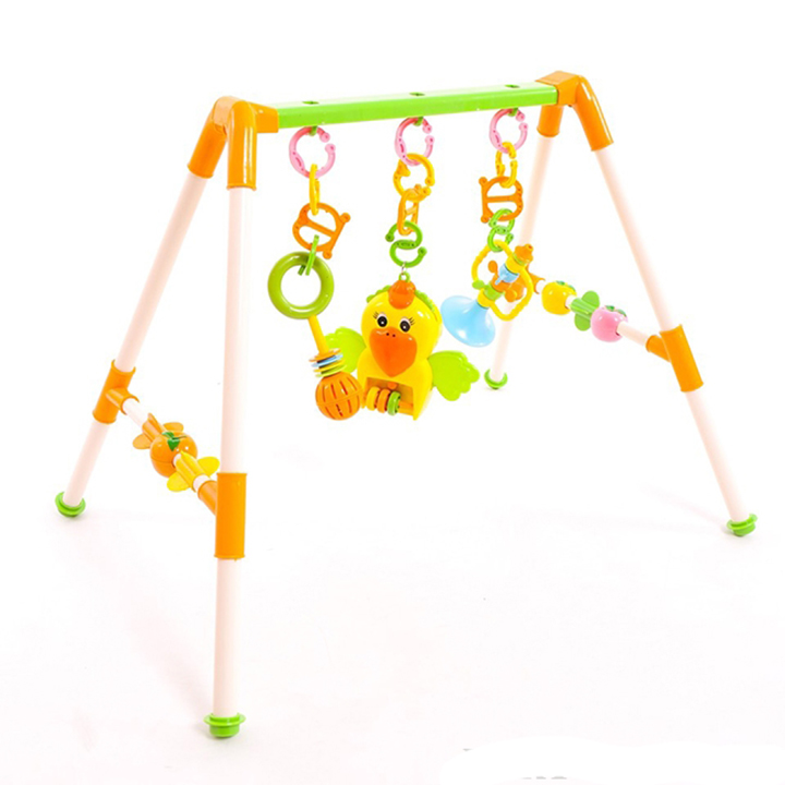 - Thiết kế chắc chắn bao gồm 4 chân có 4 núm cao su bịt đảm bảo sự chắc chắn, không trơn trượt, 2 khung ngang được lắp với chân bằng chữ V, làm cho sản phẩm thêm phần chắc chắc không lung lay. Ngoài ra 2 khung ngang còn được treo đồ chơi xúc xắc hình bướm và những bông hoa có thể xoay tròn. Bốn chân được lắp vào 2 thành bên gắn liền với mái nhà có treo nhiều loại đồ chơi xúc sắc đa dạng màu sắc bắt mắt kèm theo.