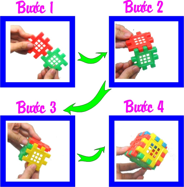 Bé hãy nhìn theo sách dướng dẫn để lắp ráp thành các mô hình sinh động. Mỗi loại miếng ghép sẽ tạo ra được những mô hình khác nhau. Các mô hình có thể kết hợp với nhau để tạo nên một thế giới ghép hình đa dạng đầy thú vị.