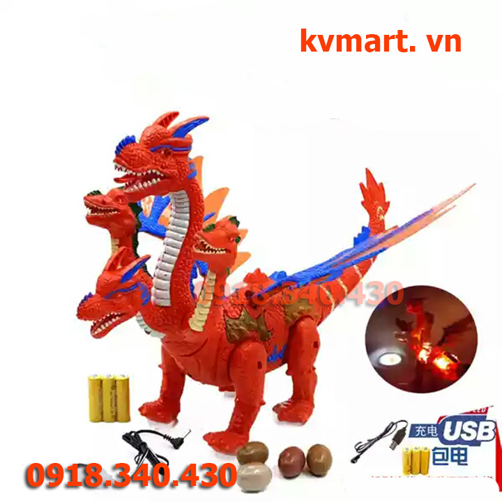 Đồ chơi Khủng long bạo chúa là loại đồ chơi dùng pin có thể vừa di chuyển vừa đập đập cánh và đẻ trứng, phát ra tiếng gầm gru dễ sợ, vảy và sừng của khủng long phát ra ánh sáng với nhiều màu sắc khác nhau rất đẹp