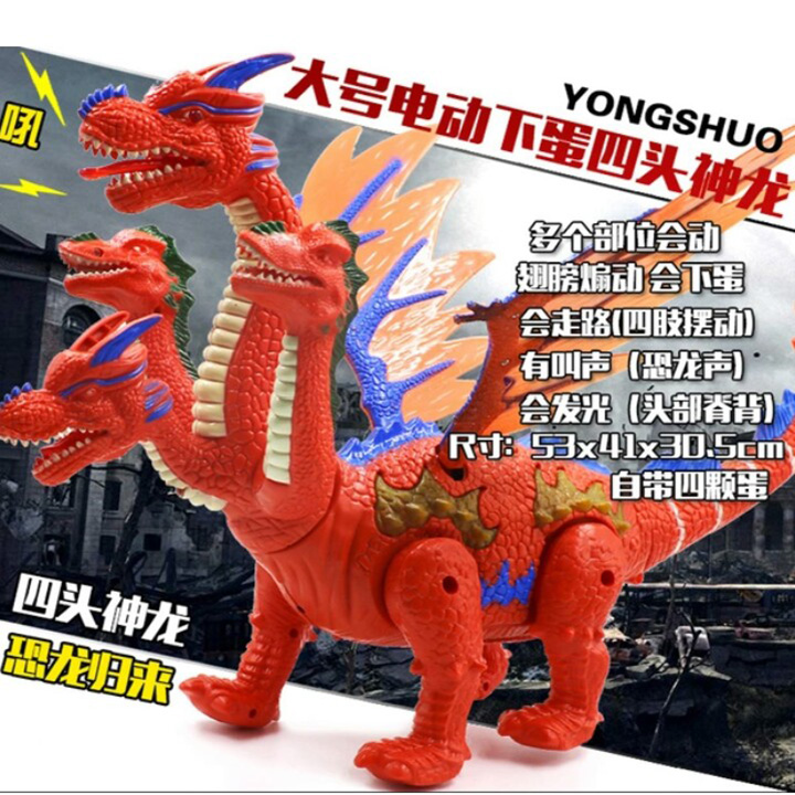 Đồ chơi Khủng long bạo chúa 4 đầu - 6668 là loại đồ chơi mô hình động vật các chú khủng long đã bị tuyệt chủng, các chú khủng long có cánh ở châu âu từ thời xưa, mặc dù là đồ chơi nhưng với màu sắc tươi sáng, kiểu dáng phong phú, đa dạng đặc biệt chú Khủng long 4 đầu này còn đèn chiếu sáng ở miệng và có thể đẻ trứng chắc chắn sẽ là món quà độc đáo dành tặng quà cho các bé trai. Sản phẩm dành cho các bé từ 3 tuổi trở lên.