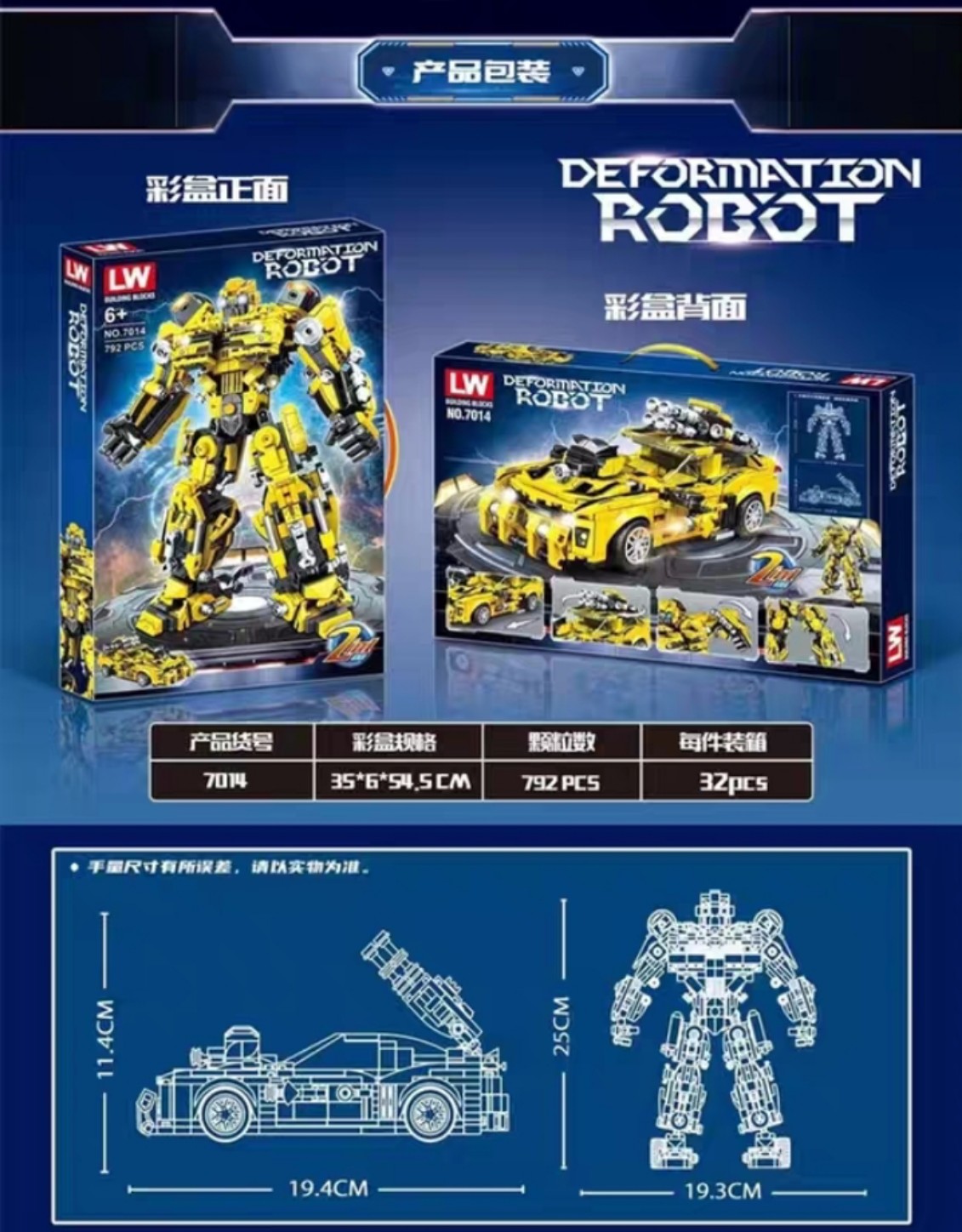 Lắp ráp lego Robot Biến Hình Bumblebee 2 in 1 792 Mảnh - LEWAN 7014 là sản phẩm được rất nhiều bé yêu thích, sản phẩm có thể lắp thành robot Biến Hình Optimus Prime theo bộ phim hoạt hình TRANSFOMER. Chất liệu nhựa thân thiện môi trường, an toàn không gây hại cho bé khi sử dụng, sẩn phẩm lắp ráp enlighten phù hợp với bé từ 4 đến 14 tuổi. Sản phẩm được đóng gói trong hộp kín đi kèm có sách hướng dẫn lắp ráp từng chi tiết giúp bé hoàn thiện bộ lego Robot Biến Hình Bumblebee 2 in 1 792Mảnh - LEWAN 7014 thật nhanh chóng.