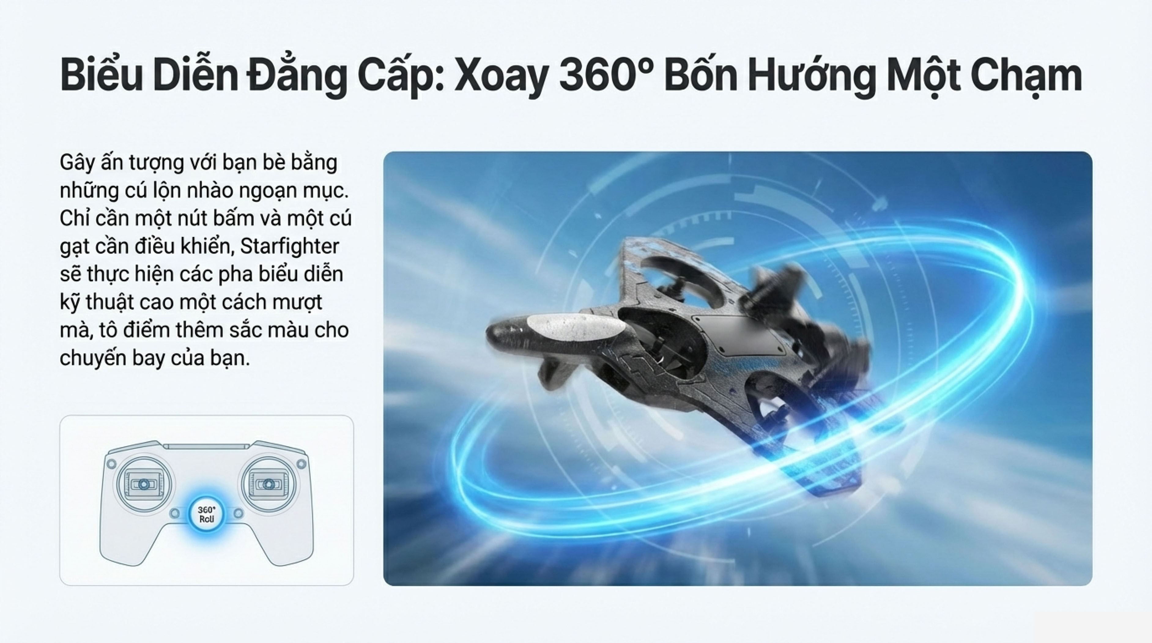 Biểu diễn đẳng cấp: Kích hoạt chế độ lộn 360° chỉ bằng một lần gạt cần để tạo nên những màn trình diễn ngoạn mục.