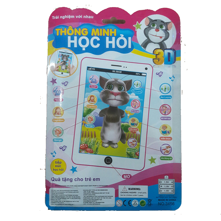 Máy tính bảng mèo Tom Cat 3D thông minh dùng pin có nhạc với thiết kế tinh tế, sống động như một chiếc Ipad thật với hình chú mèo ngộ nghĩnh, màu sắc tươi sáng bắt mắt cho bé thêm phần thích thú khi chơi, nhiều chức năng độc đáo như cảm ứng âm thanh trên các bộ phận mắt, mũi, tai của chú mèo Tom, còn có chức năng kể chuyện, bài hát ru ngủ, kiến thức, hiểu động vật,.... sẽ là món đồ chơi rất thú vị đối với các bé. Sản phẩm dành cho các bé từ 3 tuổi trở lên