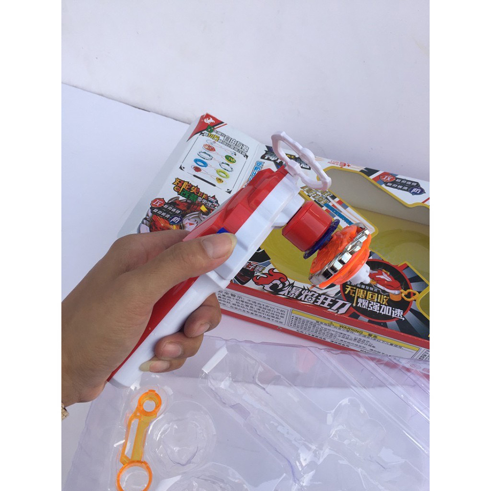 Sản phẩm gồm 1 tay quay, 1 con quay và 1 dụng cụ để tháo rời các chi tiết con quay. Con quay rất khỏe dễ quay. Lắp con quay tự dính vào tay quay không phải chỉnh góc rất dễ vào, Khi quay đến mức cực đại bé ấn nhẹ thanh gạt bên hông là con quay tự rơi ra
