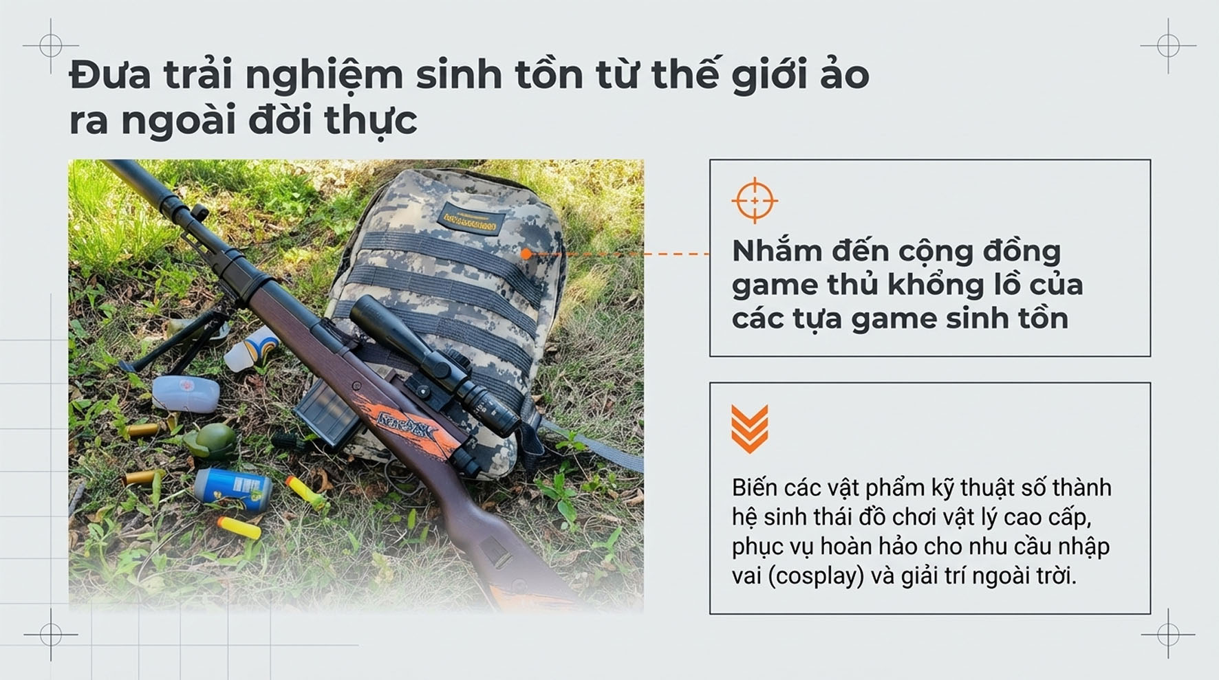 • 01 Thân súng chính: Thiết kế chắc chắn, tích hợp cơ chế bắn