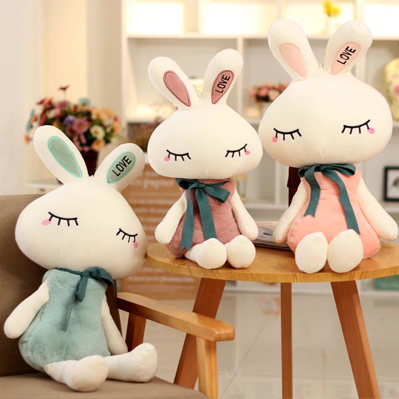Thỏ mắt híp nhồi bông size 80 cm là bạn thỏ kiểu dáng mới ra nhưng đã được rất nhiều em nhỏ yêu thích. Vì sao vậy? Làm sao không yêu em cho được khi nhìn em vô cùng kute với đôi mắt nhắm tịt vì đang say giấc nhưng lộ rõ bờ my cong vút, đôi tai to dựng đứng được thêu chữ "LOVE" rất cầu kỳ. Ngay dưới cổ đó là một chiếc nơ xinh xắn. Chắc chắn đây sẽ là món quà mà chỉ để dành cho phái nữ, vì Gấu bông, thú nhồi bông và thú bông được biết đến là một trong những đồ chơi nhồi bông mang hình dạng con gấu. Gấu bông luôn là sự lựa chọn hoàn hảo trong mỗi dịp lễ đặc biệt như ngày noel, sinh nhật, ngày tình yêu, ngày kỉ niệm …..