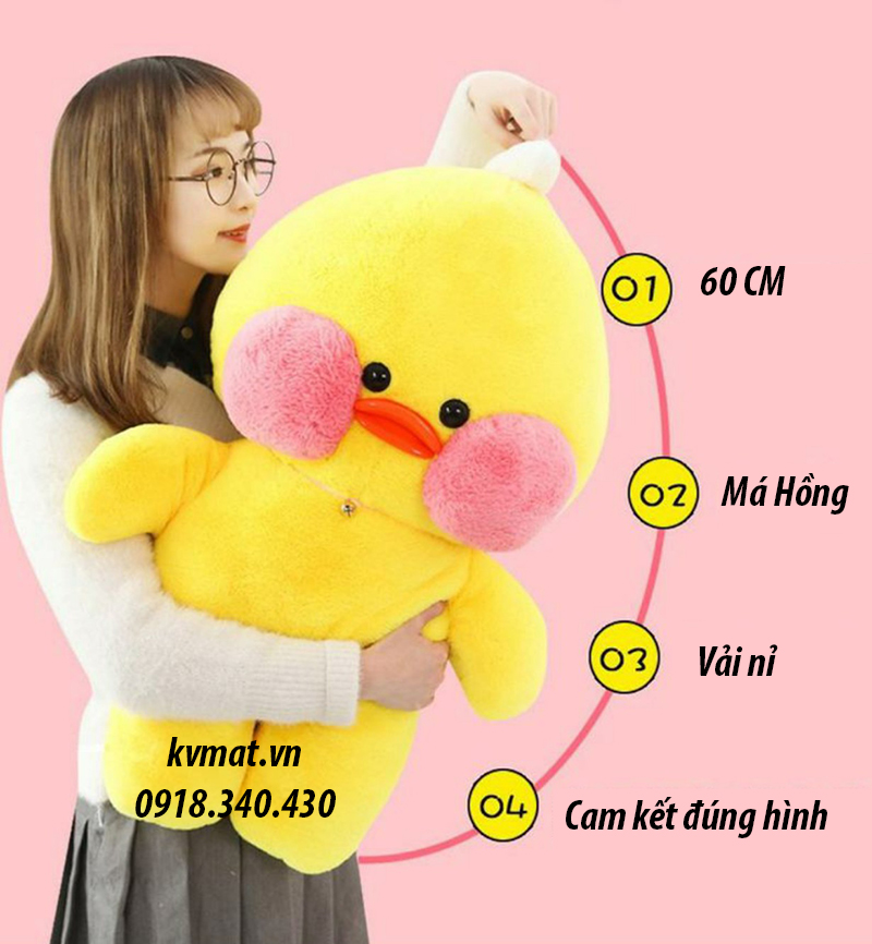 Chú Vịt LALAFANFAN nhồi bông có chiều cao 60cm. Với kích thước như vậy rất thích hợp để làm gối ôm hoặc làm vật trang trí trên bàn học, giá sách, căn phòng…
