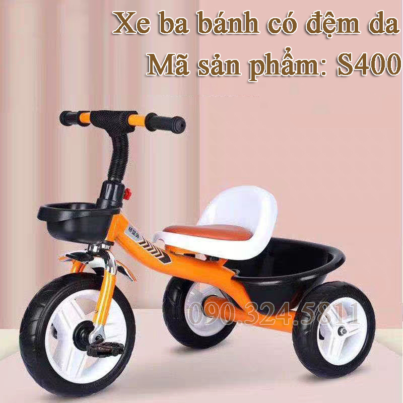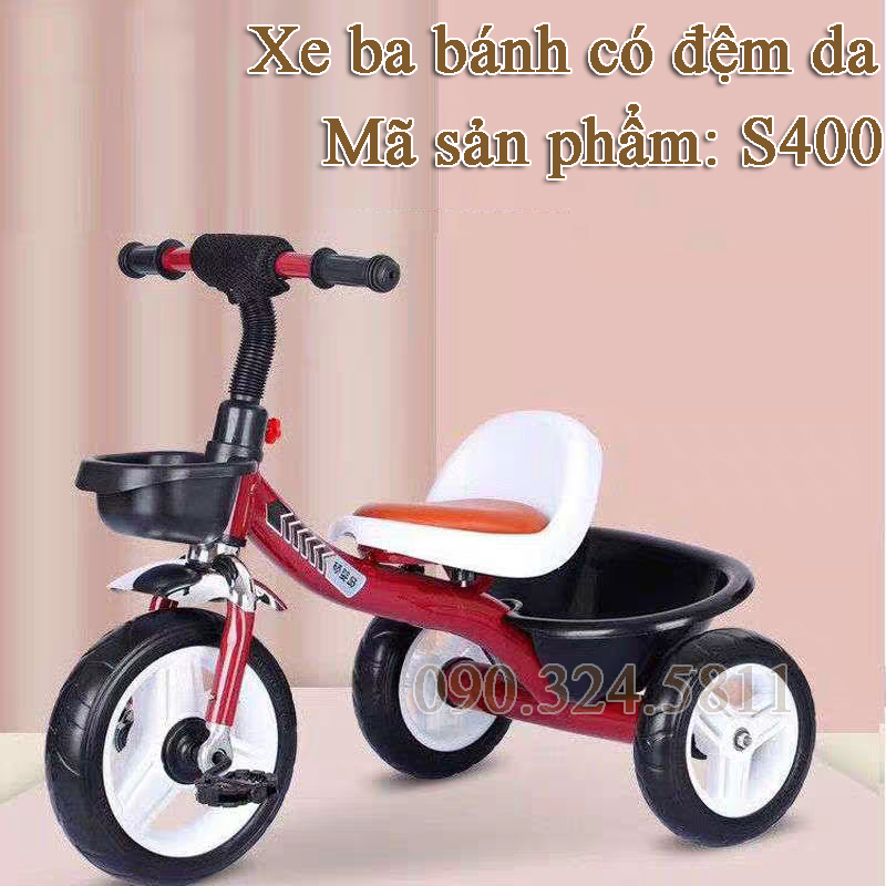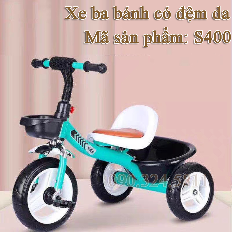 XE ĐẠP 3 BÁNH CÓ GHẾ ĐỆM DA - S400 có khung thép ống dày chắc chắn, không gỉ sét, được phun sơn tĩnh điện bóng đẹp hạn chế trầy xướt. Những chiếc xe đạp trẻ em cho bé yêu sẽ kích thích bé vận động giảm cân nặng, tăng chiều cao, hình thành tính tự lập cho bé yêu…Xe đạp 3 bánh cho bé có bình nước là một lựa chọn thông minh cho bé yêu nhà bạn.