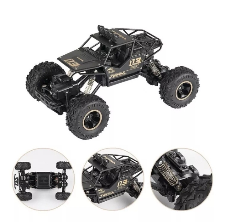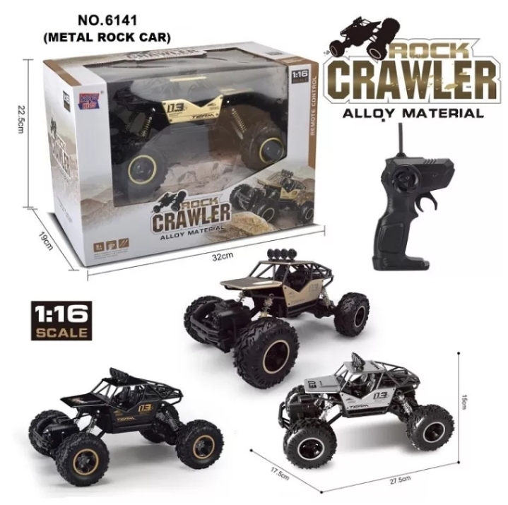 Xe Địa Hình Rock Crawler Điều Khiển Từ Xa, Pin Sạc - No.6141 là một chiếc Ô TÔ ĐỊA HÌNH có thể vượt mọi địa hình khác nhau với tỉ lệ 1:16, Chạy đa địa hình mà địa hình nào chạy cũng nhanh (địa hình thì bay nhảy vèo vèo mà đường phẳng thì chạy cực nhanh) Ô tô điều khiển lộn nhào 360 độ, vượt dốc, vượt chướng ngại vật đi trên mọi địa hình, Xe được thiết kế động cơ 2 cầu công suất cao. Chuyển động cả 4 bánh. Hình thức hầm hố (vì hình thức rất ngầu mà các nhà sản xuất cho ra các size nhỏ hơn, cũng rất thông dụng là size 1/18 bé bé xinh xinh. Xe chạy bằng động cơ điện). Dễ sửa chữa và làm vệ sinh. Phụ tùng rất dễ tương thích, rẻ và phổ thông nhất do tính thông dụng của nó